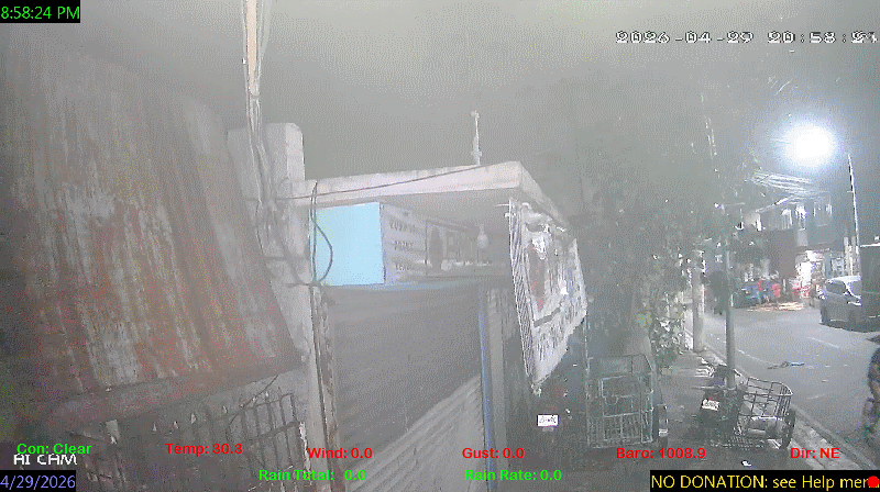 1 Rain season in the Philippines: June 1st to Oct 31st.   5 Estimated amount of water needed to replace the water used by plants and evaporation from the past week. (Negative numbers mean amount of water needed, positive numbers mean excess water is present).   6 Air Quality Index is provided by Luftdaten System esp8266 and is updated every 5 mins..   9 Solar Index represents either an absolute scale of solar energy (W/m²) using the station’s recorded maximum or a percentage of computed theoretical solar maximum using the station’s location and time of day. These indices differ most when the sun is low on the horizon. The current scale is shown, and will toggle if it or the icon is clicked.   10 Historical average only to day 29 of just the month of April for this station since 2017.   11 Historical average rain this season to day 29 of April for this station since 2017.