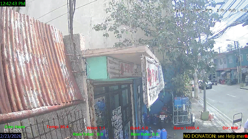 1 Rain season in the Philippines: June 1st to Oct 31st.   5 Estimated amount of water needed to replace the water used by plants and evaporation from the past week. (Negative numbers mean amount of water needed, positive numbers mean excess water is present).   6 Air Quality Index is provided by Luftdaten System esp8266 and is updated every 5 mins..   10 Historical average only to day 23 of just the month of February for this station since 2016.   11 Historical average rain this season to day 23 of February for this station since 2016.