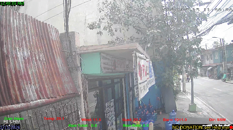 1 Rain season in the Philippines: June 1st to Oct 31st.   5 Estimated amount of water needed to replace the water used by plants and evaporation from the past week. (Negative numbers mean amount of water needed, positive numbers mean excess water is present).   6 Air Quality Index is provided by Luftdaten System esp8266 and is updated every 5 mins..   9 Solar Index represents either an absolute scale of solar energy (W/m²) using the station’s recorded maximum or a percentage of computed theoretical solar maximum using the station’s location and time of day. These indices differ most when the sun is low on the horizon. The current scale is shown, and will toggle if it or the icon is clicked.   10 Historical average only to day 13 of just the month of February for this station since 2016.   11 Historical average rain this season to day 13 of February for this station since 2016.