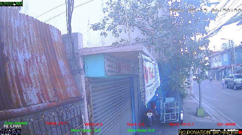 1 Rain season in the Philippines: June 1st to Oct 31st.   5 Estimated amount of water needed to replace the water used by plants and evaporation from the past week. (Negative numbers mean amount of water needed, positive numbers mean excess water is present).   6 Air Quality Index is provided by Luftdaten System esp8266 and is updated every 5 mins..   9 Solar Index represents either an absolute scale of solar energy (W/m²) using the station’s recorded maximum or a percentage of computed theoretical solar maximum using the station’s location and time of day. These indices differ most when the sun is low on the horizon. The current scale is shown, and will toggle if it or the icon is clicked.   10 Historical average only to day 13 of just the month of February for this station since 2016.   11 Historical average rain this season to day 13 of February for this station since 2016.