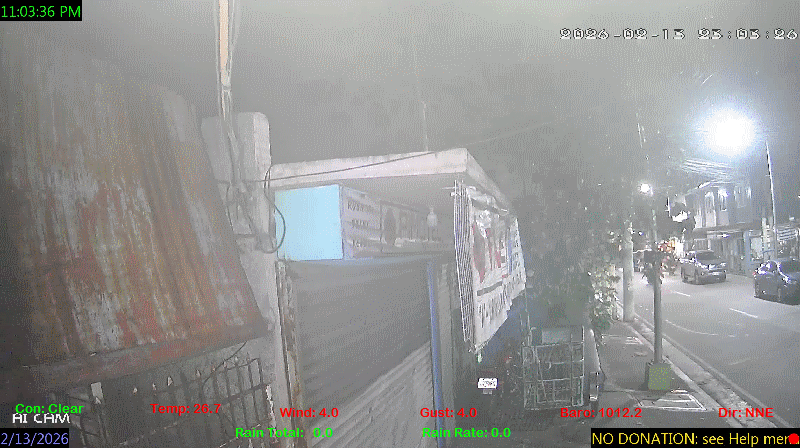 1 Rain season in the Philippines: June 1st to Oct 31st.   5 Estimated amount of water needed to replace the water used by plants and evaporation from the past week. (Negative numbers mean amount of water needed, positive numbers mean excess water is present).   6 Air Quality Index is provided by Luftdaten System esp8266 and is updated every 5 mins..   10 Historical average only to day 13 of just the month of February for this station since 2016.   11 Historical average rain this season to day 13 of February for this station since 2016.