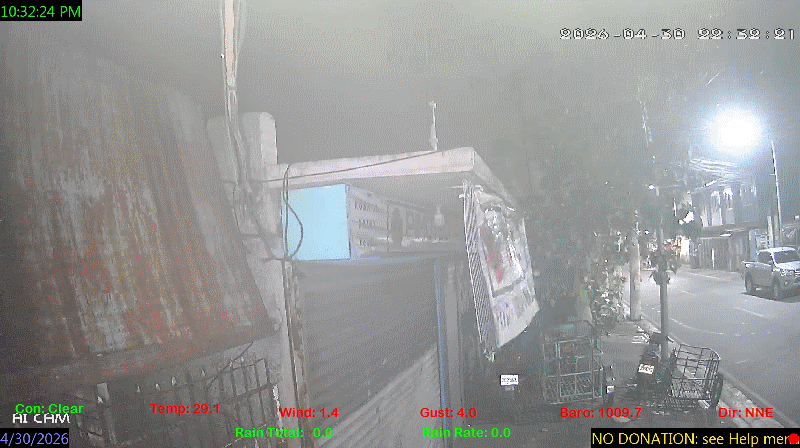 1 Rain season in the Philippines: June 1st to Oct 31st.   5 Estimated amount of water needed to replace the water used by plants and evaporation from the past week. (Negative numbers mean amount of water needed, positive numbers mean excess water is present).   6 Air Quality Index is provided by Luftdaten System esp8266 and is updated every 5 mins..   10 Historical average only to day 30 of just the month of April for this station since 2017.   11 Historical average rain this season to day 30 of April for this station since 2017.