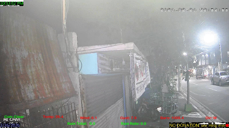 1 Rain season in the Philippines: June 1st to Oct 31st.   5 Estimated amount of water needed to replace the water used by plants and evaporation from the past week. (Negative numbers mean amount of water needed, positive numbers mean excess water is present).   6 Air Quality Index is provided by Luftdaten System esp8266 and is updated every 5 mins..   9 Solar Index represents either an absolute scale of solar energy (W/m²) using the station’s recorded maximum or a percentage of computed theoretical solar maximum using the station’s location and time of day. These indices differ most when the sun is low on the horizon. The current scale is shown, and will toggle if it or the icon is clicked.   10 Historical average only to day 26 of just the month of February for this station since 2016.   11 Historical average rain this season to day 26 of February for this station since 2016.