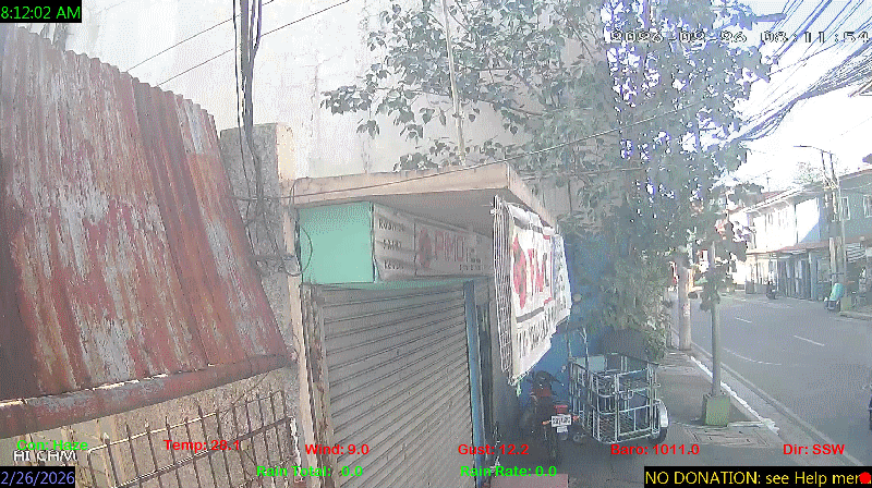 1 Rain season in the Philippines: June 1st to Oct 31st.   5 Estimated amount of water needed to replace the water used by plants and evaporation from the past week. (Negative numbers mean amount of water needed, positive numbers mean excess water is present).   6 Air Quality Index is provided by Luftdaten System esp8266 and is updated every 5 mins..   10 Historical average only to day 26 of just the month of February for this station since 2016.   11 Historical average rain this season to day 26 of February for this station since 2016.