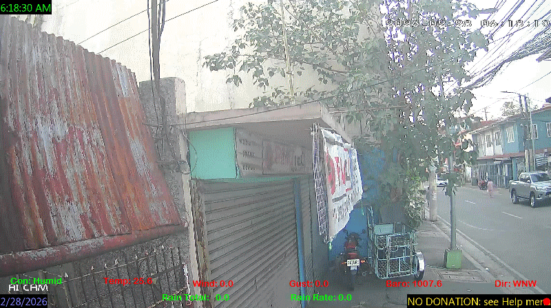 1 Rain season in the Philippines: June 1st to Oct 31st.   5 Estimated amount of water needed to replace the water used by plants and evaporation from the past week. (Negative numbers mean amount of water needed, positive numbers mean excess water is present).   6 Air Quality Index is provided by Luftdaten System esp8266 and is updated every 5 mins..   10 Historical average only to day 28 of just the month of February for this station since 2016.   11 Historical average rain this season to day 28 of February for this station since 2016.