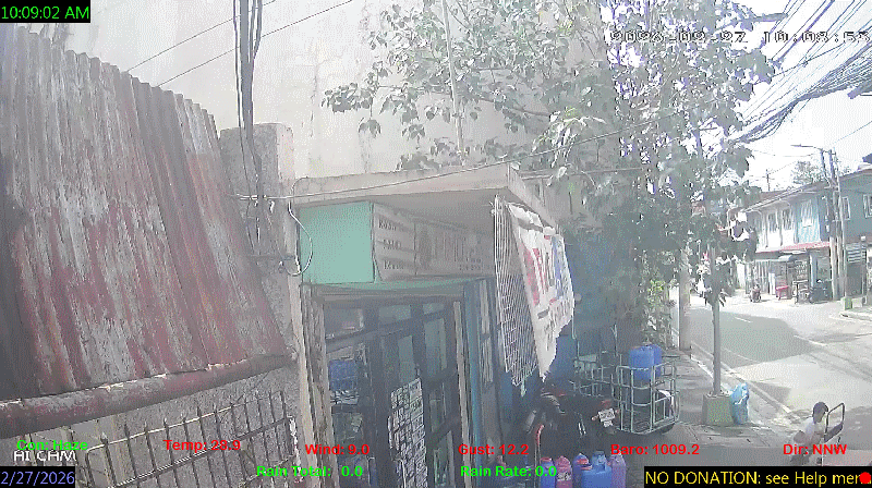 1 Rain season in the Philippines: June 1st to Oct 31st.   5 Estimated amount of water needed to replace the water used by plants and evaporation from the past week. (Negative numbers mean amount of water needed, positive numbers mean excess water is present).   6 Air Quality Index is provided by Luftdaten System esp8266 and is updated every 5 mins..   10 Historical average only to day 26 of just the month of February for this station since 2016.   11 Historical average rain this season to day 26 of February for this station since 2016.