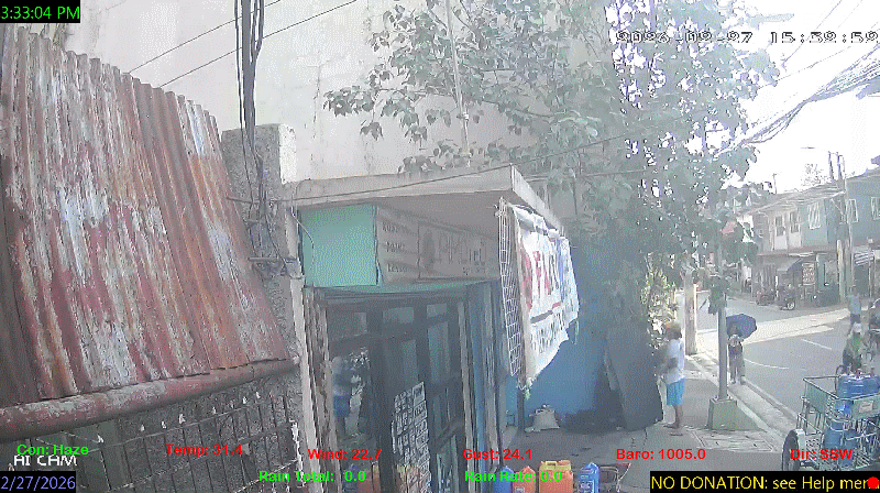 1 Rain season in the Philippines: June 1st to Oct 31st.   5 Estimated amount of water needed to replace the water used by plants and evaporation from the past week. (Negative numbers mean amount of water needed, positive numbers mean excess water is present).   6 Air Quality Index is provided by Luftdaten System esp8266 and is updated every 5 mins..   9 Solar Index represents either an absolute scale of solar energy (W/m²) using the station’s recorded maximum or a percentage of computed theoretical solar maximum using the station’s location and time of day. These indices differ most when the sun is low on the horizon. The current scale is shown, and will toggle if it or the icon is clicked.   10 Historical average only to day 27 of just the month of February for this station since 2016.   11 Historical average rain this season to day 27 of February for this station since 2016.