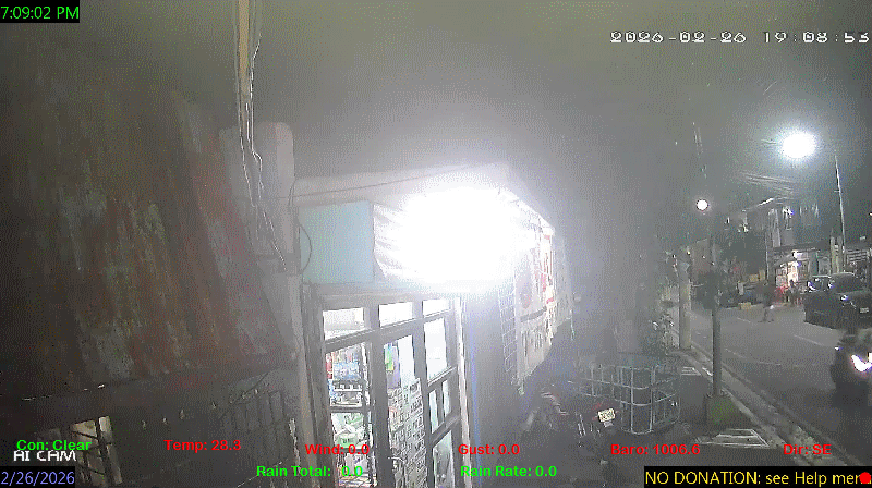 1 Rain season in the Philippines: June 1st to Oct 31st.   5 Estimated amount of water needed to replace the water used by plants and evaporation from the past week. (Negative numbers mean amount of water needed, positive numbers mean excess water is present).   6 Air Quality Index is provided by Luftdaten System esp8266 and is updated every 5 mins..   9 Solar Index represents either an absolute scale of solar energy (W/m²) using the station’s recorded maximum or a percentage of computed theoretical solar maximum using the station’s location and time of day. These indices differ most when the sun is low on the horizon. The current scale is shown, and will toggle if it or the icon is clicked.   10 Historical average only to day 26 of just the month of February for this station since 2016.   11 Historical average rain this season to day 26 of February for this station since 2016.