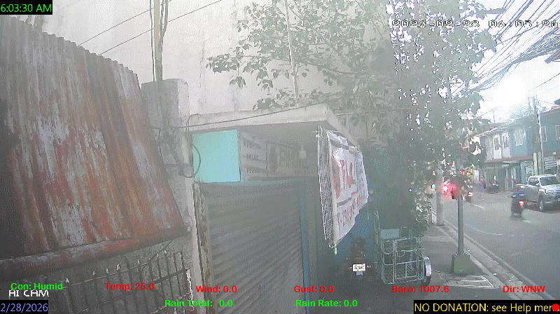 1 Rain season in the Philippines: June 1st to Oct 31st.   5 Estimated amount of water needed to replace the water used by plants and evaporation from the past week. (Negative numbers mean amount of water needed, positive numbers mean excess water is present).   6 Air Quality Index is provided by Luftdaten System esp8266 and is updated every 5 mins..   10 Historical average only to day 27 of just the month of February for this station since 2016.   11 Historical average rain this season to day 27 of February for this station since 2016.