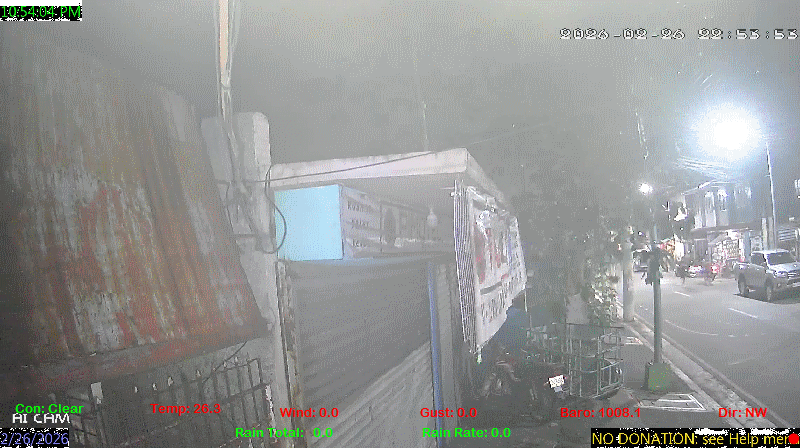 1 Rain season in the Philippines: June 1st to Oct 31st.   5 Estimated amount of water needed to replace the water used by plants and evaporation from the past week. (Negative numbers mean amount of water needed, positive numbers mean excess water is present).   6 Air Quality Index is provided by Luftdaten System esp8266 and is updated every 5 mins..   9 Solar Index represents either an absolute scale of solar energy (W/m²) using the station’s recorded maximum or a percentage of computed theoretical solar maximum using the station’s location and time of day. These indices differ most when the sun is low on the horizon. The current scale is shown, and will toggle if it or the icon is clicked.   10 Historical average only to day 26 of just the month of February for this station since 2016.   11 Historical average rain this season to day 26 of February for this station since 2016.