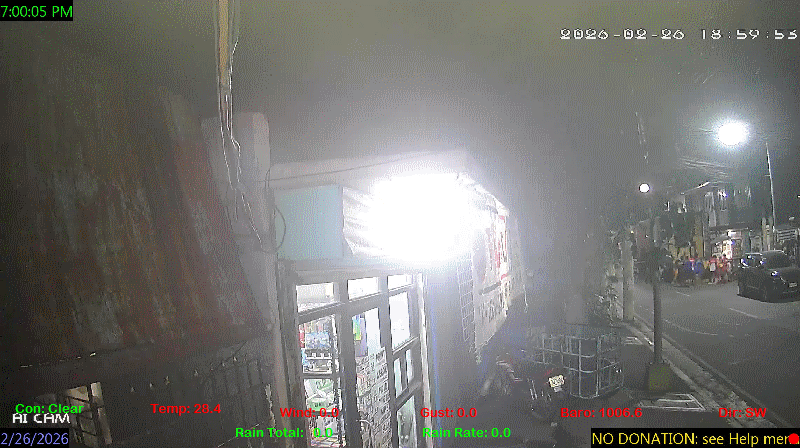 1 Rain season in the Philippines: June 1st to Oct 31st.   5 Estimated amount of water needed to replace the water used by plants and evaporation from the past week. (Negative numbers mean amount of water needed, positive numbers mean excess water is present).   6 Air Quality Index is provided by Luftdaten System esp8266 and is updated every 5 mins..   9 Solar Index represents either an absolute scale of solar energy (W/m²) using the station’s recorded maximum or a percentage of computed theoretical solar maximum using the station’s location and time of day. These indices differ most when the sun is low on the horizon. The current scale is shown, and will toggle if it or the icon is clicked.   10 Historical average only to day 26 of just the month of February for this station since 2016.   11 Historical average rain this season to day 26 of February for this station since 2016.
