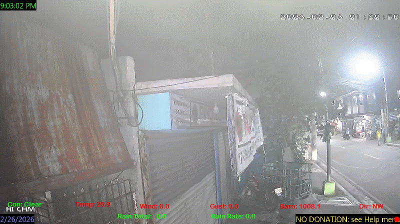 1 Rain season in the Philippines: June 1st to Oct 31st.   5 Estimated amount of water needed to replace the water used by plants and evaporation from the past week. (Negative numbers mean amount of water needed, positive numbers mean excess water is present).   6 Air Quality Index is provided by Luftdaten System esp8266 and is updated every 5 mins..   9 Solar Index represents either an absolute scale of solar energy (W/m²) using the station’s recorded maximum or a percentage of computed theoretical solar maximum using the station’s location and time of day. These indices differ most when the sun is low on the horizon. The current scale is shown, and will toggle if it or the icon is clicked.   10 Historical average only to day 26 of just the month of February for this station since 2016.   11 Historical average rain this season to day 26 of February for this station since 2016.