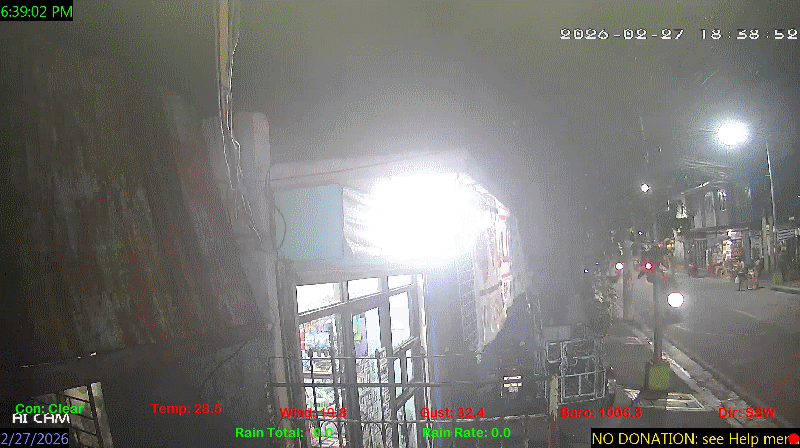 1 Rain season in the Philippines: June 1st to Oct 31st.   5 Estimated amount of water needed to replace the water used by plants and evaporation from the past week. (Negative numbers mean amount of water needed, positive numbers mean excess water is present).   6 Air Quality Index is provided by Luftdaten System esp8266 and is updated every 5 mins..   9 Solar Index represents either an absolute scale of solar energy (W/m²) using the station’s recorded maximum or a percentage of computed theoretical solar maximum using the station’s location and time of day. These indices differ most when the sun is low on the horizon. The current scale is shown, and will toggle if it or the icon is clicked.   10 Historical average only to day 27 of just the month of February for this station since 2016.   11 Historical average rain this season to day 27 of February for this station since 2016.