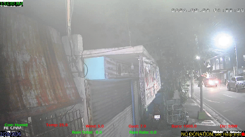 1 Rain season in the Philippines: June 1st to Oct 31st.   5 Estimated amount of water needed to replace the water used by plants and evaporation from the past week. (Negative numbers mean amount of water needed, positive numbers mean excess water is present).   6 Air Quality Index is provided by Luftdaten System esp8266 and is updated every 5 mins..   9 Solar Index represents either an absolute scale of solar energy (W/m²) using the station’s recorded maximum or a percentage of computed theoretical solar maximum using the station’s location and time of day. These indices differ most when the sun is low on the horizon. The current scale is shown, and will toggle if it or the icon is clicked.   10 Historical average only to day 26 of just the month of February for this station since 2016.   11 Historical average rain this season to day 26 of February for this station since 2016.