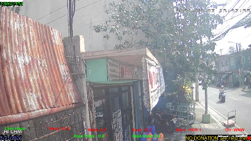 1 Rain season in the Philippines: June 1st to Oct 31st.   5 Estimated amount of water needed to replace the water used by plants and evaporation from the past week. (Negative numbers mean amount of water needed, positive numbers mean excess water is present).   6 Air Quality Index is provided by Luftdaten System esp8266 and is updated every 5 mins..   9 Solar Index represents either an absolute scale of solar energy (W/m²) using the station’s recorded maximum or a percentage of computed theoretical solar maximum using the station’s location and time of day. These indices differ most when the sun is low on the horizon. The current scale is shown, and will toggle if it or the icon is clicked.   10 Historical average only to day 27 of just the month of February for this station since 2016.   11 Historical average rain this season to day 27 of February for this station since 2016.