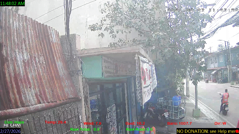 1 Rain season in the Philippines: June 1st to Oct 31st.   5 Estimated amount of water needed to replace the water used by plants and evaporation from the past week. (Negative numbers mean amount of water needed, positive numbers mean excess water is present).   6 Air Quality Index is provided by Luftdaten System esp8266 and is updated every 5 mins..   10 Historical average only to day 27 of just the month of February for this station since 2016.   11 Historical average rain this season to day 27 of February for this station since 2016.