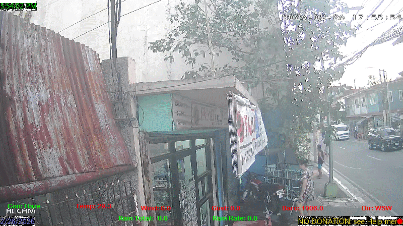 1 Rain season in the Philippines: June 1st to Oct 31st.   5 Estimated amount of water needed to replace the water used by plants and evaporation from the past week. (Negative numbers mean amount of water needed, positive numbers mean excess water is present).   6 Air Quality Index is provided by Luftdaten System esp8266 and is updated every 5 mins..   9 Solar Index represents either an absolute scale of solar energy (W/m²) using the station’s recorded maximum or a percentage of computed theoretical solar maximum using the station’s location and time of day. These indices differ most when the sun is low on the horizon. The current scale is shown, and will toggle if it or the icon is clicked.   10 Historical average only to day 26 of just the month of February for this station since 2016.   11 Historical average rain this season to day 26 of February for this station since 2016.